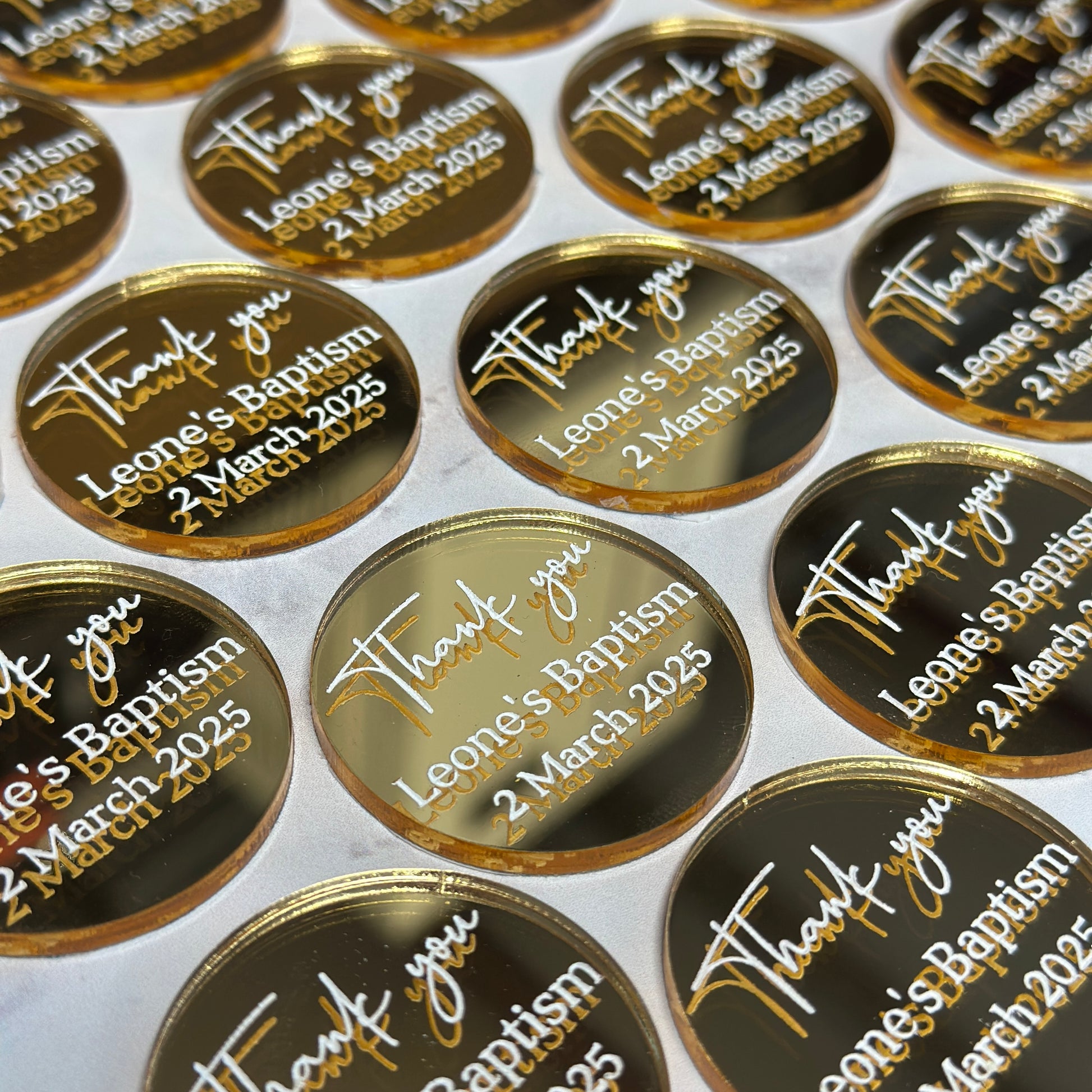 You can customise the size, shape, wording colour and font. Please CONTACT US to discuss the finer details.